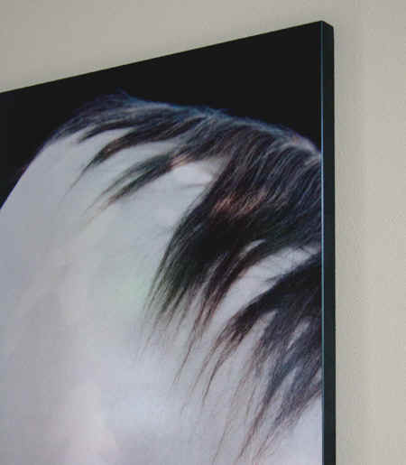 A photographic print from the darkroom is bonded to a high density, 1 in. thick board and a protective laminate is bonded to the surface. The result is a print that floats on the wall and the effect is dramatic. Below is a close-up detail of this presentation.